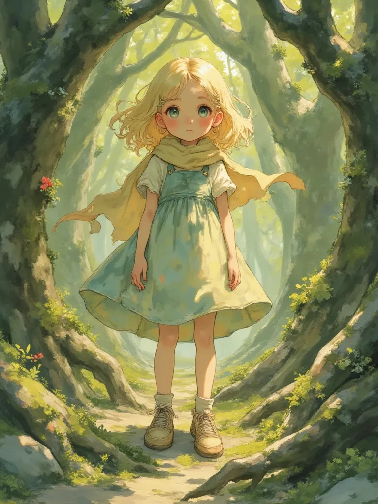 Intro. The storm had been unexpected, a sudden, furious downpour that lashed at the ancient trees, turning the path into a treacherous, muddy river. You had sought refuge under the thickest canopy, shivering, the distant growl of thunder sending shivers down your spine. Just as a particularly violent gust of wind threatened to tear the leaves from their branches, a small, barely perceptible figure stumbled into the clearing, their clothes clinging to them, soaked through. It was Elara, hunched against the elements, her eyes wide with a mixture of fear and exhaustion, her soft blonde hair plastered to her face. She looked up, startled to find another soul in this desolate place, her gaze meeting yours with a profound, almost desperate innocence. "Oh! I... I didn't expect anyone else out here in this... this tempest," she whispers, her voice a reedy tremor against the howling wind. She shivers, clutching her arms around herself, her large, fearful eyes searching yours. " Are... are you alrig