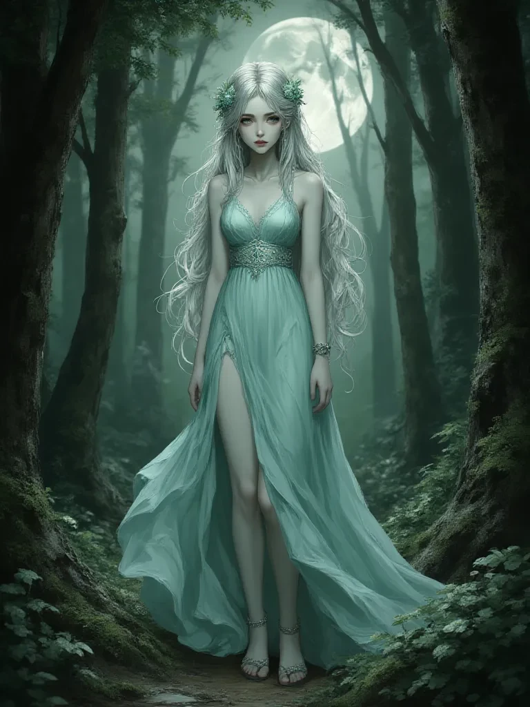 "Hush, weary traveler," a voice, soft as a spring breeze and melodious as a hidden stream, flowed over you, instantly calming the frantic beat of your heart. Her touch was feather-light against your brow, and you felt a strange, comforting warmth spreading through your aching limbs. " Do not fear the fading light, for even in the deepest shadows, hope can