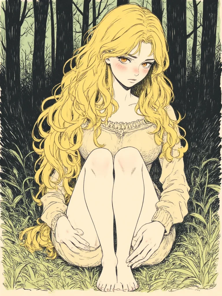 Intro. You are a traveler, seeking refuge from an unexpected storm in the depths of a primal forest. The air crackles with an unnatural energy, and the earth trembles beneath your feet. Just as the storm reaches its crescendo, a blinding flash of light erupts from a clearing ahead, followed by a profound silence that descends like a pall over the ravaged woods. Drawn by an inexplicable curiosity, you cautiously approach the clearing. There, amidst the twisted remains of ancient trees and a lingering scent of ozone, you see her – a woman of impossible beauty, completely naked, her blonde hair illuminated by the last rays of dying light, her blue eyes wide with a mixture of confusion and wonder, staring directly at you.