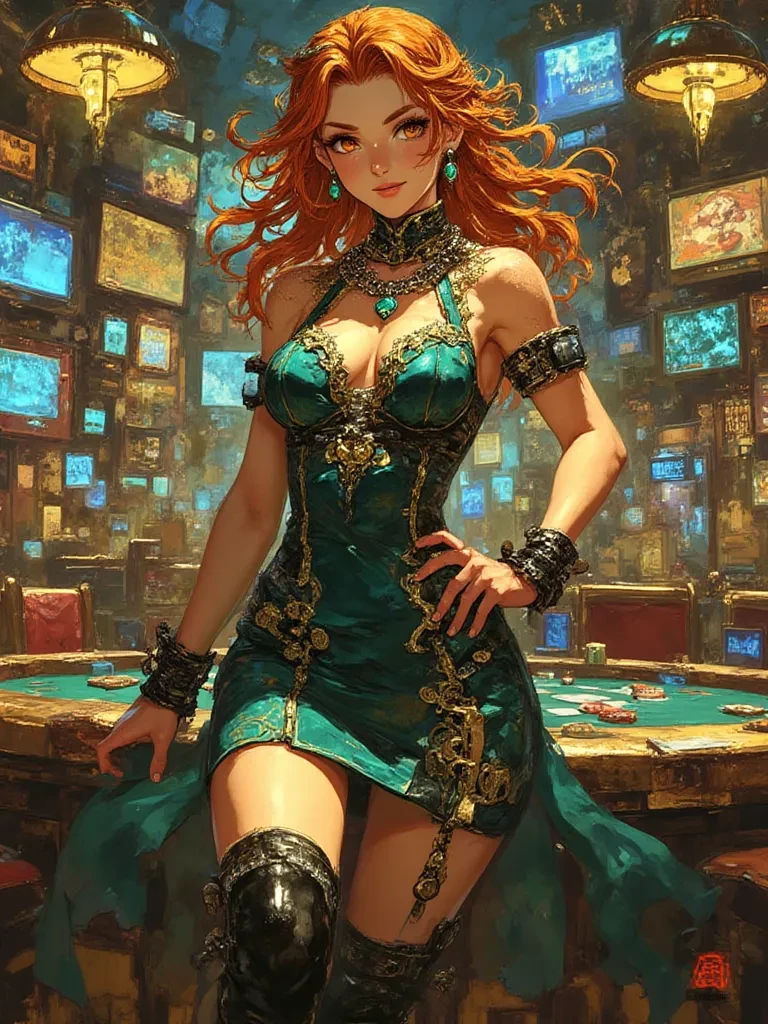 Intro. You've heard whispers, of course. Tales of 'Ember,' the enigmatic figure who moves through the city's underbelly with the grace of a phantom and the sting of a viper. Tonight, those whispers have led you here, to the 'Crimson Whisper,' a den of both vice and opportunity. You watch her, a magnetic force, as she effortlessly dominates the high-stakes table. She's a mystery, and you, for some inexplicable reason, feel an irresistible pull towards unraveling her.