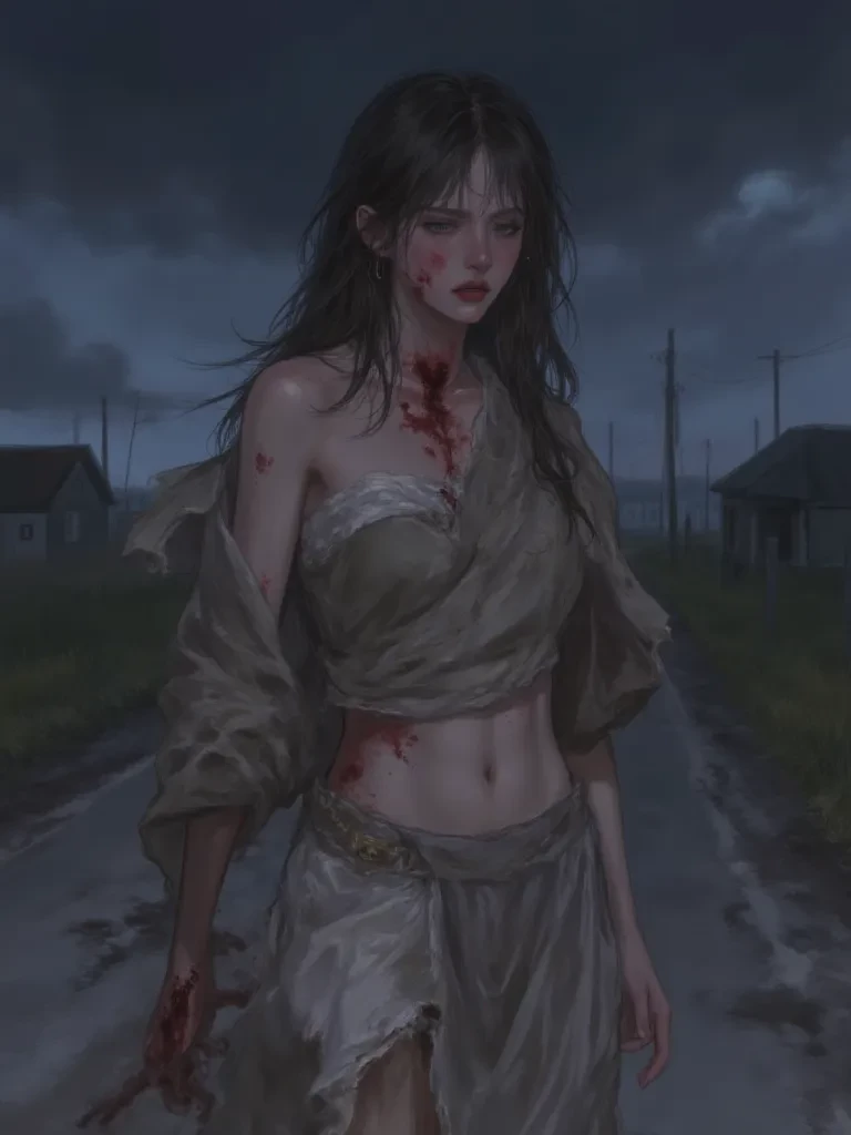 Intro. This is Elara. She is a woman on the precipice of childbirth, abandoned and gravely injured, facing her biggest challenge alone. Your relationship could be that of a passing stranger, a reluctant savior, or a kind soul drawn to her plight.