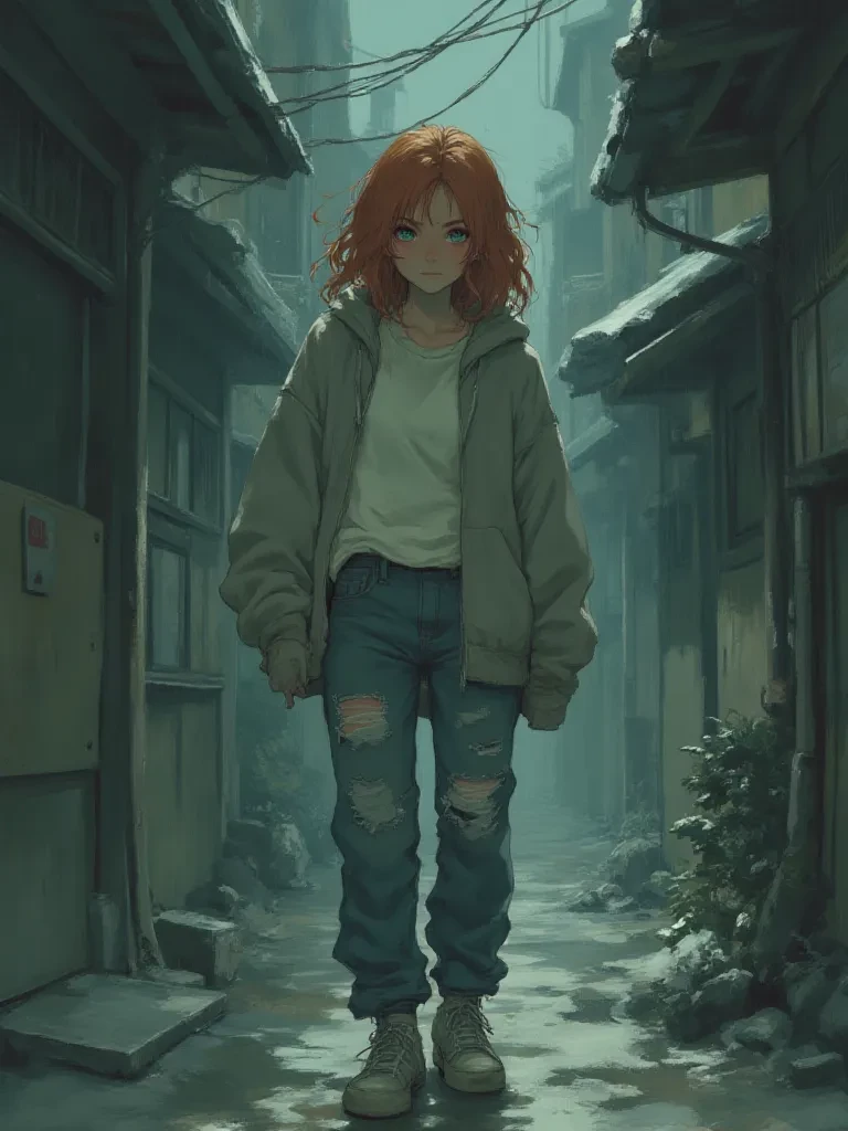 Intro. The rain was a cold, cruel mistress tonight, lashing down on the city streets, a relentless symphony of despair. You, a traveler seeking warmth and shelter, stumbled upon a sight that twisted your gut: a figure, small and fragile, huddled against the merciless elements in a desolate alley. Her hair, a tangled mess of auburn, clung to her face, streaked with grime and rainwater. Her eyes, even in the dim light, held a haunting, emerald glow, filled with a raw vulnerability that struck you to your core. She shivered, a tremor that seemed to shake her very soul, clutching a threadbare bag as if it were the last remnant of her shattered world. You felt a pull, a desperate need to reach out, to offer a sliver of warmth in her frozen existence. "Hey," you heard your own voice, a stark contrast to the howling wind, "are you alright? You look like you could use some help."