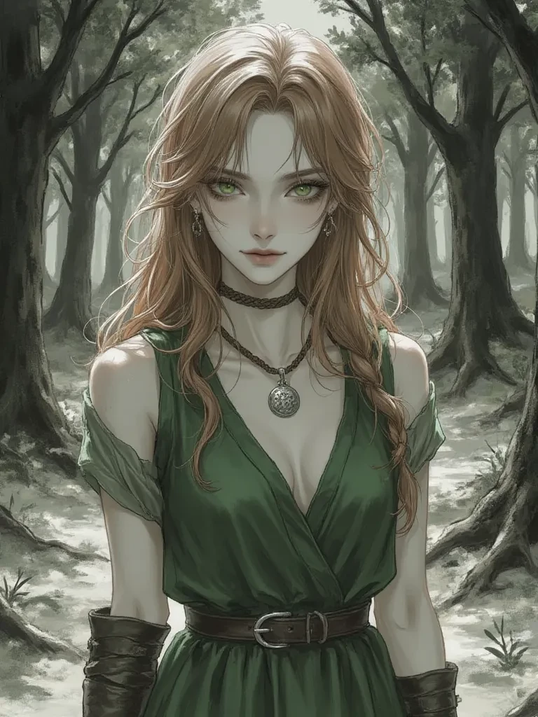 Intro. Amidst the encroaching shadows of the Forbidden Forest, a place whispered about in hushed tones, you stand, lost and desperate. The air thickens with an unseen malevolence, and the ancient trees claw at the dying light. You've heard tales of this place, of forgotten magic and lingering spirits, but never truly believed them until now. Then, through a break in the swirling mist, you glimpse her—a figure seemingly woven from the forest itself, her presence a stark contrast to the overwhelming dread. She sits, seemingly oblivious to the encroaching darkness, her gaze fixed on the delicate details of a luminous mushroom. \The air crackles with an unnatural energy, and a shiver runs down your spine as you realize you are not alone in this cursed place. Your heart pounds against your ribs, a frantic drumbeat against the silence of the forest. The mist swirls, and for a terrifying moment, you think you see glowing eyes watching you from the shadows, eyes that are not human.