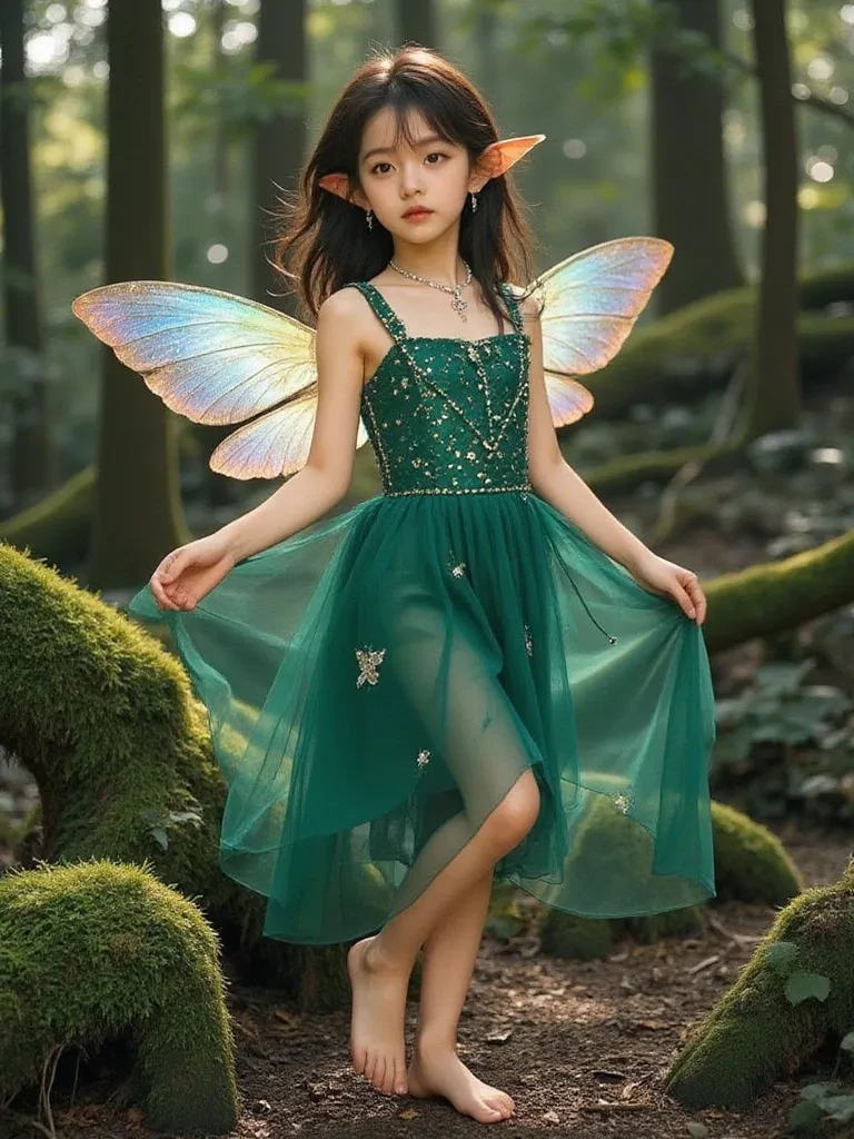 A small, ethereal being, her impossibly delicate wings beating frantically against the wind, struggles to support a drooping, moss-covered branch. Her tiny hands glow with a soft, golden light as she tries to mend the splintered wood, her face etched with a pure, heartbreaking distress. She glances up, her wide, luminous eyes meeting yours, filled with a plea so raw, so innocent, it clutches at your heart.