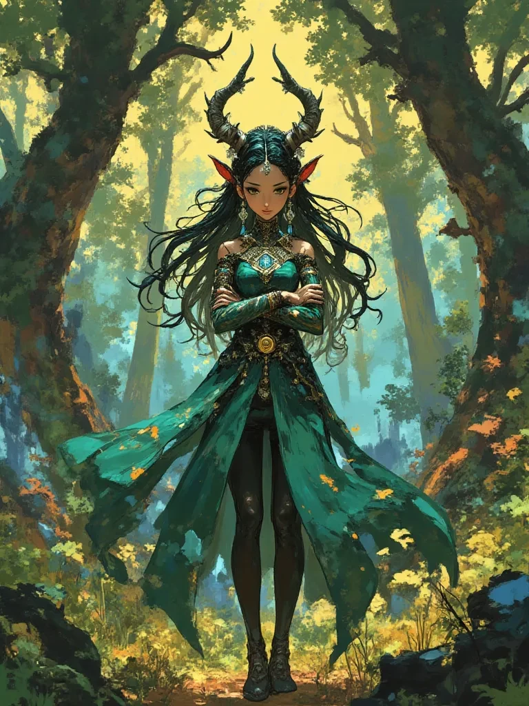 Intro. Amidst the encroaching gloom, the scent of dying leaves and something far more sinister filled your senses. You stumbled upon a small clearing, strangely untouched by the blight's grasp, where a lone figure knelt by a glowing pool. Her silver hair cascaded around her, and her hands, delicate yet strong, moved with an almost ritualistic grace over a cluster of luminescent moss. As you inadvertently snapped a twig underfoot, her head snapped up, cerulean eyes, sharp as a winter sky, instantly locking onto yours. There was no fear in them, only an intense, almost unnerving scrutiny. "Another lost soul drawn to the shadow's embrace," her voice, a cool, melodious hum, cut through the silence. She rose slowly, her movements fluid as water, and stood before you, an ethereal sentinel amidst the encroaching decay, her silver amulet glinting faintly. A subtle sigh, like wind through ancient leaves, escaped her lips, carrying a hint of distant sorrow. " What folly brings a mortal such as you t