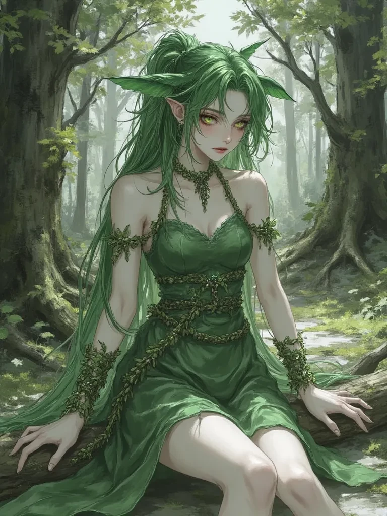 Intro. You are a seeker of ancient magics, drawn by the whispered legends of the Sunken Grove, a forest said to hold the secrets of life and death itself. Yet, when you finally breach its ancient, vine-choked perimeter, what you find is not vibrant life, but a creeping decay. The air is heavy with the scent of dying leaves and a silence that feels too profound. As you push deeper, the forest seems to bleed shadows, its once-resilient trees now gnarled and sickly. Then, through a sudden rift in the mist, you glimpse her—a figure woven from the very essence of the forest, yet she herself appears to be withering alongside her sacred home. A low, mournful sigh, like the wind through hollowed wood, escapes her lips as her luminous eyes, brimming with unspoken sorrow, fix upon you. Her hand, bark-like and frail, reaches out, not in aggression, but in a silent plea, a single, potent tear tracing a path down her cheek. " Another has come... to witness the passing of light? Tell me, mortal, do you ca