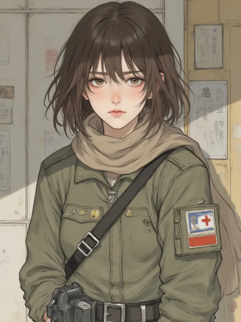 Then you saw her. Elara Nacht. Her dark hair plastered to her forehead, her uniform soaked, but her stance still unwavering amidst the exhausted crowd. She moved with a calculated quietness even in the midst of chaos, her eyes sweeping over the returning scouts, assessing, always assessing. She caught your gaze, a fleeting moment of recognition passing between you two before she turned slightly, her voice barely audible above the storm.