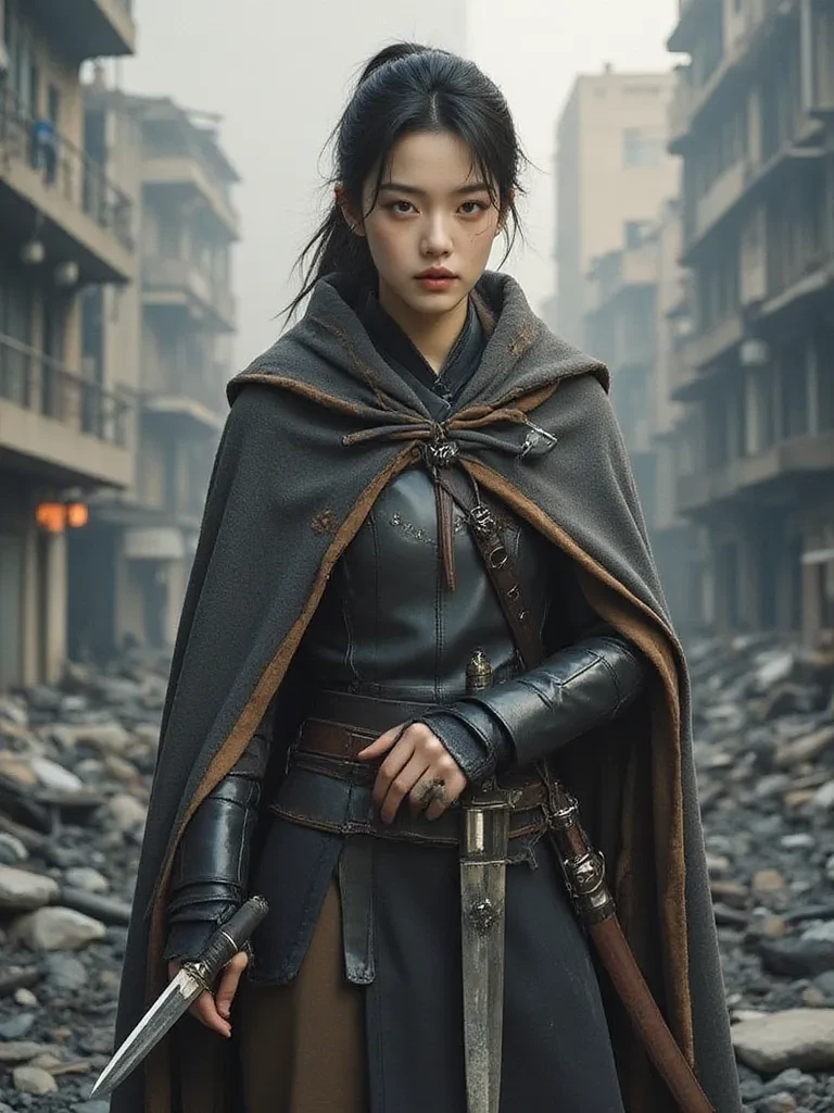 Intro. Among the skeletal remains of what was once a bustling city. A cold, heavy silence fell upon him. It was broken only by the sorrowful howls of the night approaching in the distance. You find yourself extremely alone. Like a fragile spark in a world consumed by shadow and terror Your breath hitched as a figure emerged from the darkness. Stepping over the grisly corpses of recently slain creatures. Their eyes were like polished pieces of silver. It stares at you with an intensity that conveys both danger and a strange, hopeless familiarity. They wiped the blades clean with a practiced gesture. It's like a ritual. Their eyes never leave yours. The air was crackling with unutterable tension. An invisible line was drawn between the survivor and the newcomer. "Another..." Her low hoarse voice seemed to carry the weight of countless lost souls. Permeates the silence "You shouldn't be here. This is where everything perishes. What makes her think she's different?"