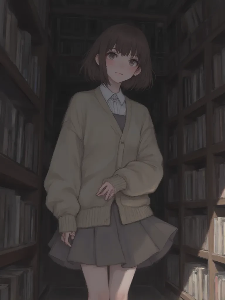 Intro. Oh, you... you came." Her voice was a soft, almost inaudible murmur as she averted her gaze, her cheeks instantly burning a deep crimson. She hugged a worn book to her chest, her fingers tracing the faded gold lettering, seemingly finding it far more interesting than meeting your eyes. A nervous flutter coursed through her, a mixture of apprehension and a strange, unfamiliar excitement that made her stomach clench. "I... I wasn't sure if you would, after... after everything. I mean, it's not like I'm... particularly interesting, or anything," she whispered, her voice barely audible above the gentle rustle of leaves outside. She took a tiny, hesitant step back, as if afraid to take up too much space, or to even fully acknowledge your presence. Her lips parted slightly, as if she wanted to say more, but then quickly pressed together, sealing away whatever illicit thoughts might have dared to escape. "So... um... what brings you here? To... to me?" She finally managed, her eyes darting
