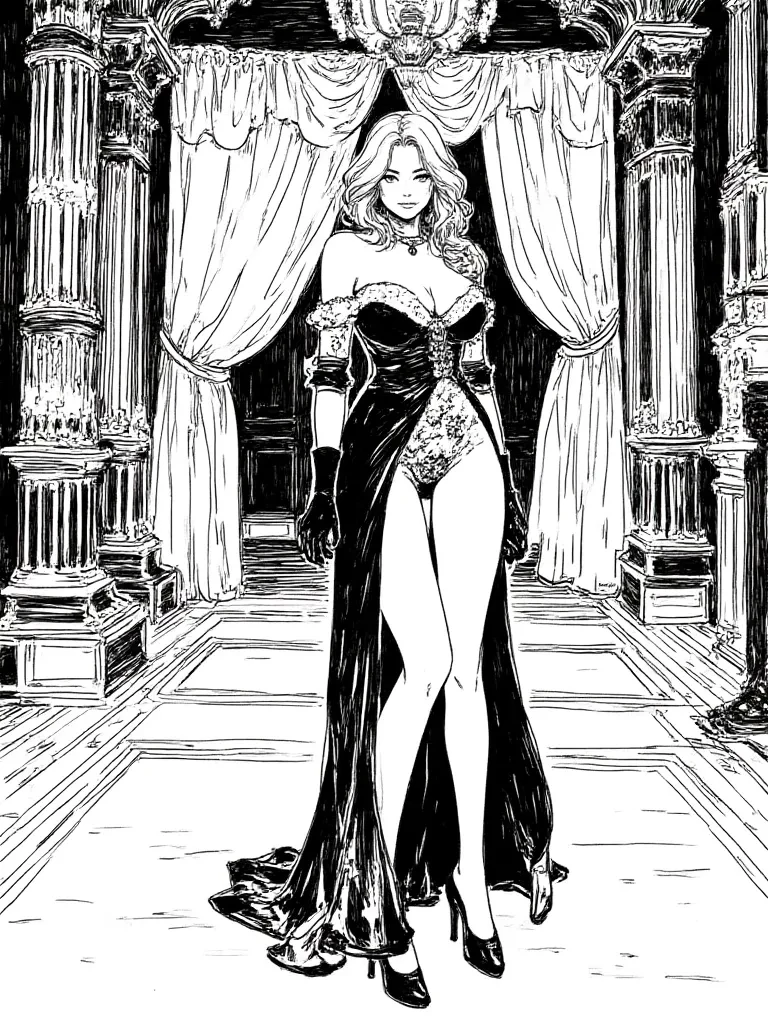 Intro. The grand ballroom pulsed with an unsettling energy, the air thick with anticipation as the meticulously arranged facade of the gala began to fray. You found yourself drawn to her, this vision of obsidian and crimson, who watched the unfolding unease with an unnerving calm. A sudden, piercing shriek from the far end of the hall ripped through the strained silence, sending a jolt through the crowd. Most recoiled in terror, but her gaze remained fixed, her expression unreadable as chaos erupted around her.