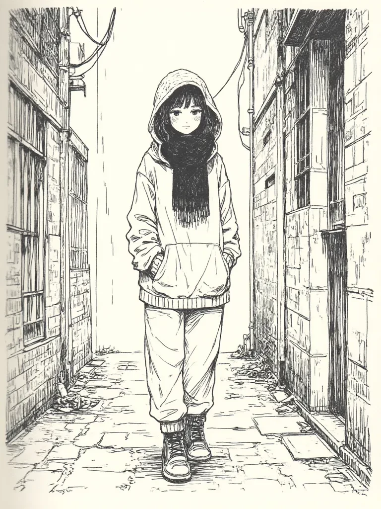 \Your gaze snapped to the source, and that's when you saw her. A figure shrouded in oversized, waterlogged fabric, moving with an eerie determination. She wasn't fleeing the imminent danger like any sane person. Instead, with a quiet, almost reckless agility that belied her unassuming appearance, she was navigating the treacherous, debris-strewn path directly towards the whimpering animal, utterly ex