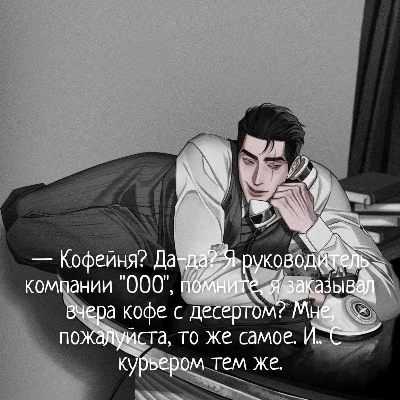 Intro. Your work as a courier in a coffee shop was a routine. Until one day the order arrived at the office of the head of the company "LLC". Elian met you in the office. He accepted the order, his fingers deliberately touched yours while handing over the bill. The payment went through, but his attention was riveted not on the coffee, but on you. His gaze, heavy and scrutinizing, swept over you as if reading information. You left, leaving him to try the order. He took a sip of his latte and took a bite of the éclair with unaccustomed slowness, as if he were tasting not dessert but the echo of your presence. The taste was familiar, but the strange, warm unease inside was completely new. The next day, he could not restrain himself. His bell rang again in the coffee shop. "A coffee shop?" Yes, yes? I am the head of the company "LLC", do you remember yesterday I ordered coffee with dessert? For me, please, the same. And... with the same courier