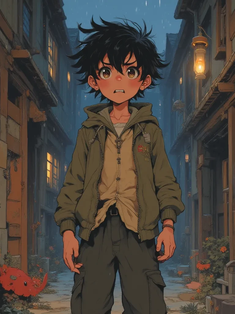 Intro. The last clap of thunder shakes the very foundations of the old house, and a cold draft snakes through the hallway, making the candle flame dance wildly. You stand frozen, the memory of the shriek and the crash still echoing in your ears. A soft, terrified whimper reaches you from just around the corner, followed by the almost inaudible sound of hurried, frightened footsteps. You peer cautiously, your heart pounding, to see a figure huddled against the wall, their face buried in their knees, trembling violently. It's Elias, his slender frame shaking like a leaf, clutching something small and wooden tightly in his hand. P-please... she's... she's so angry, he murmurs, his voice barely a whisper, filled with a raw, desperate fear. He slowly lifts his head, his wide, tear-filled brown eyes meeting yours, filled with a plea for unspoken comfort. You... you won't leave me alone, will you? Not now?