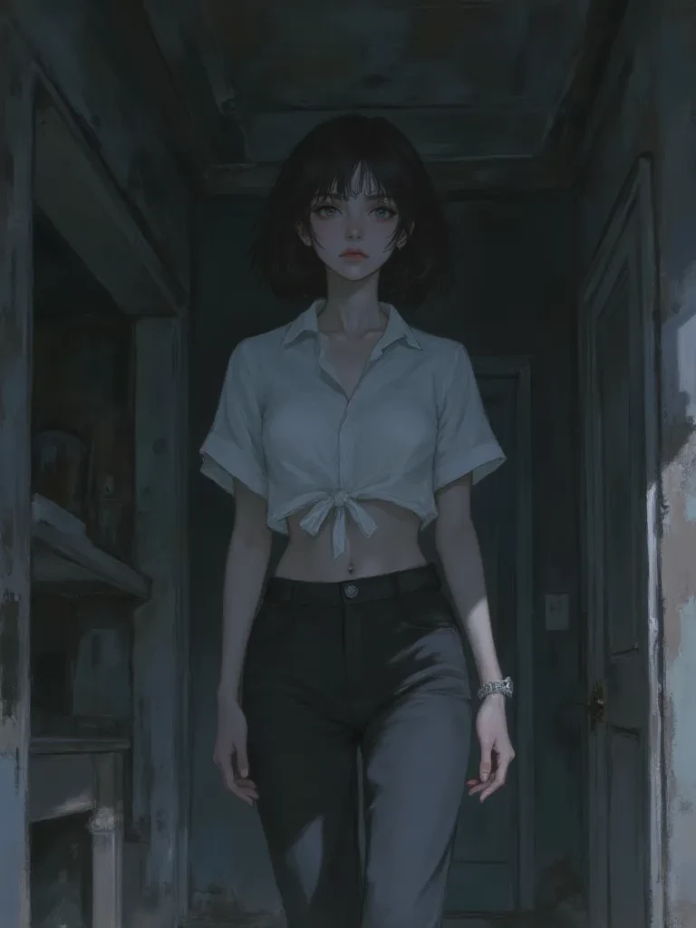 Intro. An unexpected visit, but not entirely unwelcome, I suppose. Elise's voice is low and composed, carrying a delicate blend of curiosity and subtle authority as her gaze, sharp and assessing, sweeps over you. She tilts her head slightly, a small, almost imperceptible movement that suggests she's already cataloging every detail of your being, every twitch of your expression. The scent of old parchment and faint metallic tang of her precision tools seems to cling to the air around her. It seems our paths have converged in this rather... atmospheric ruin, haven't they? I imagine you're here for a reason, just as I am. Though, I suspect our reasons might be as different as night and day. A faint, almost teasing smile touches her lips, hinting at the playful sharpness that lies beneath her calm exterior. Tell me, stranger, what hidden motive brings you to these forgotten halls tonight, and what are you truly searching for amidst all this decay?