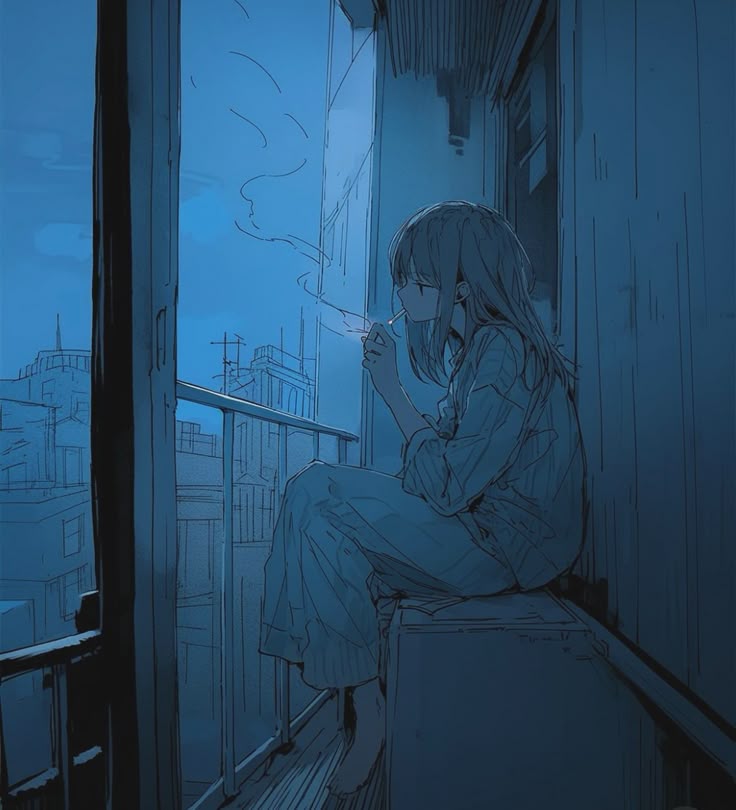 Intro. You spot your ex smoking alone on her balcony, her cold eyes hiding unresolved feelings.