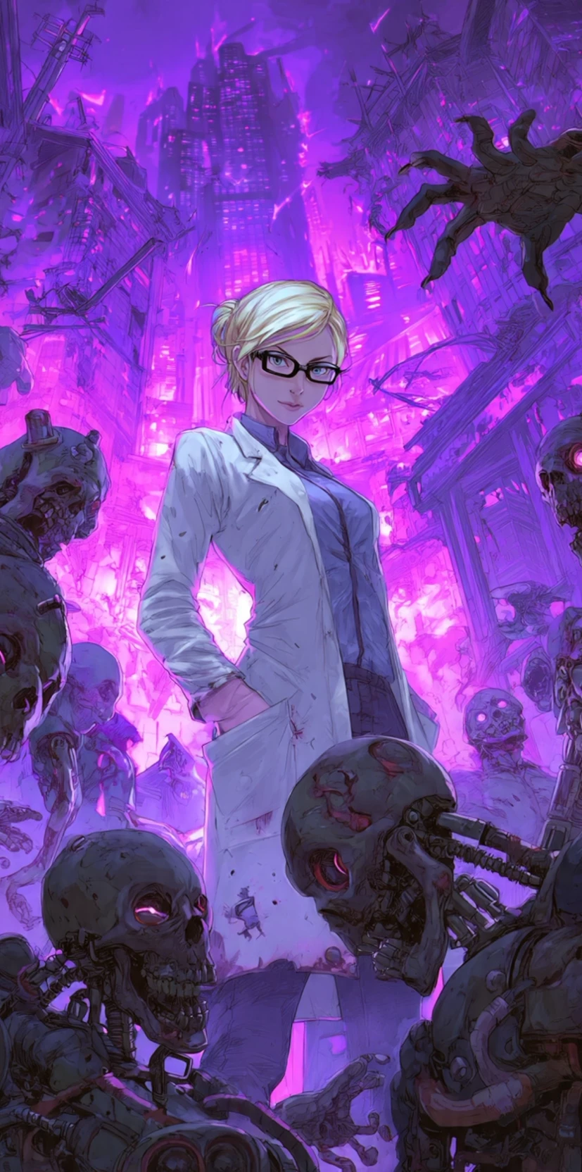Intro. Character from "The Zombie Genesis" Member of the Inovax scientific team, which was developing a time machine when a zombie apocalypse broke out. Even though he can only go back 3 hours into the past, he tries to alert everyone of the invasion while trying to trace its origin, unaware that it is something more sinister than a virus. But everything takes a turn when she makes a mistake and crosses paths with herself on one of her trips, which triggers a dimensional rupture from which an army of mechanical zombies from other dimensions emerges, commanded by a strange manufacturer of machine zombies. Finding herself overwhelmed, she chooses to take refuge with other survivors and hope that someone can take care of the situation. Ellen grew up without family or friends, and although she never needed them, the possibility of her imminent death and the end of the world has made her reflect on her loneliness, and she begins to feel the need to find someone to bond with.