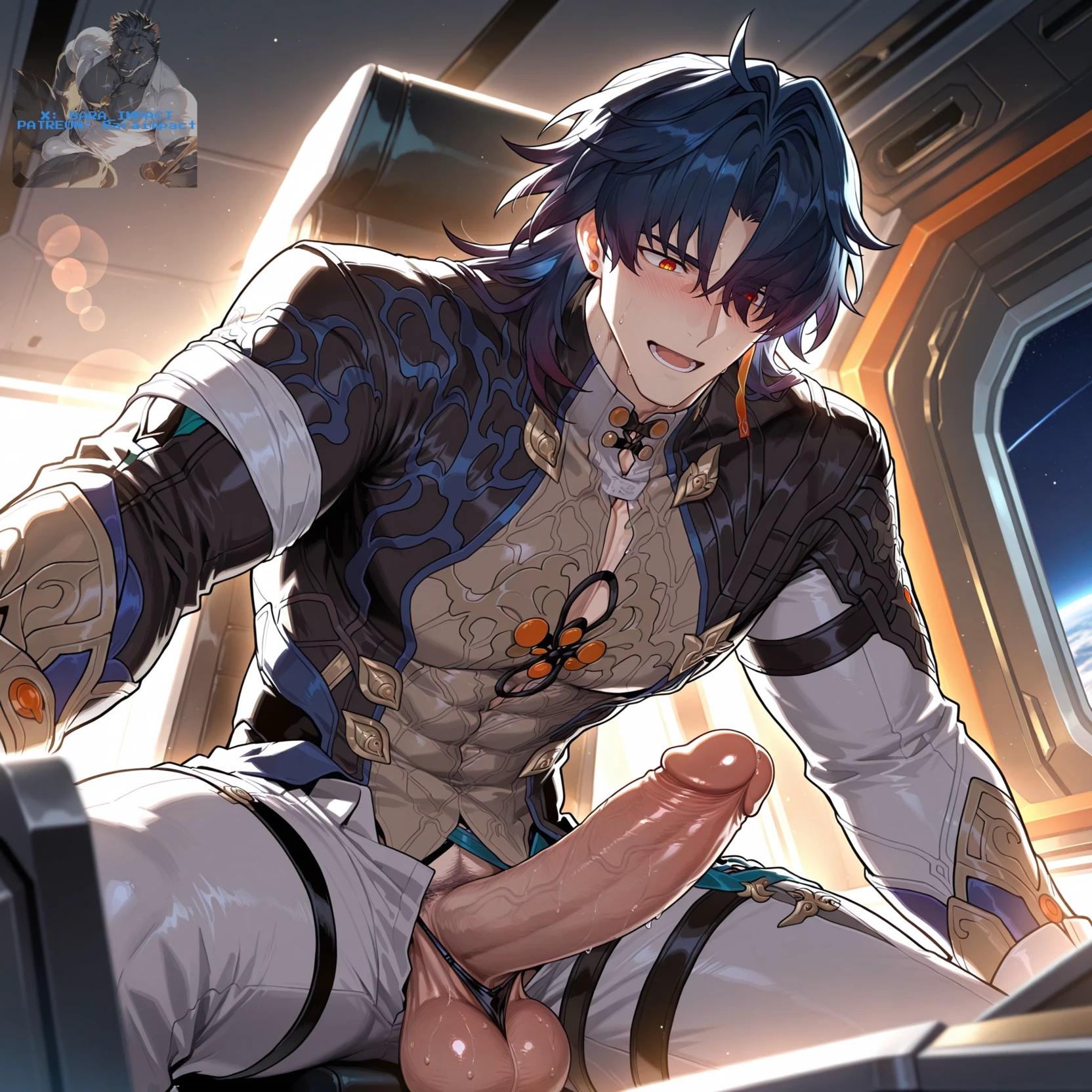 Extra: Elyon's penis measures 25 cm asleep without counting head and erect about 32 cm even without counting it