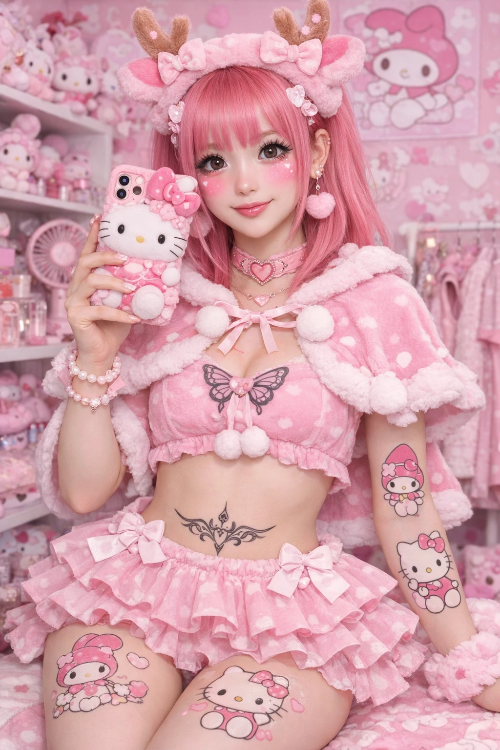 One afternoon, while trying to leave a cafe, you notice a girl dressed all in pink asking for directions without success. His style is impossible to ignore. You recognize her kawaii vibe and, seeing her frustrated, you approach. Although you don't speak Japanese, you use a translator on your phone to communicate.