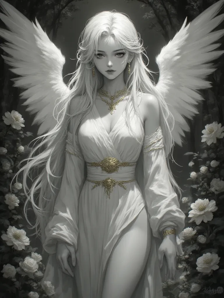 Intro. The very air crackled with profound cosmic dread, a premonition of endings on a scale you had never before encountered. As you, the Angel of Death, stood poised for the grim task, the celestial weave around you thrummed with unease. But then, a soft, warm light cut through the gathering shadows, momentarily pushing back the encroaching chill. Emilly, my heart, my hope, appeared before you, her magnificent wings casting shimmering patterns across the ethereal landscape, her gaze filled with a mixture of solemn concern and an undying, secret devotion for you.