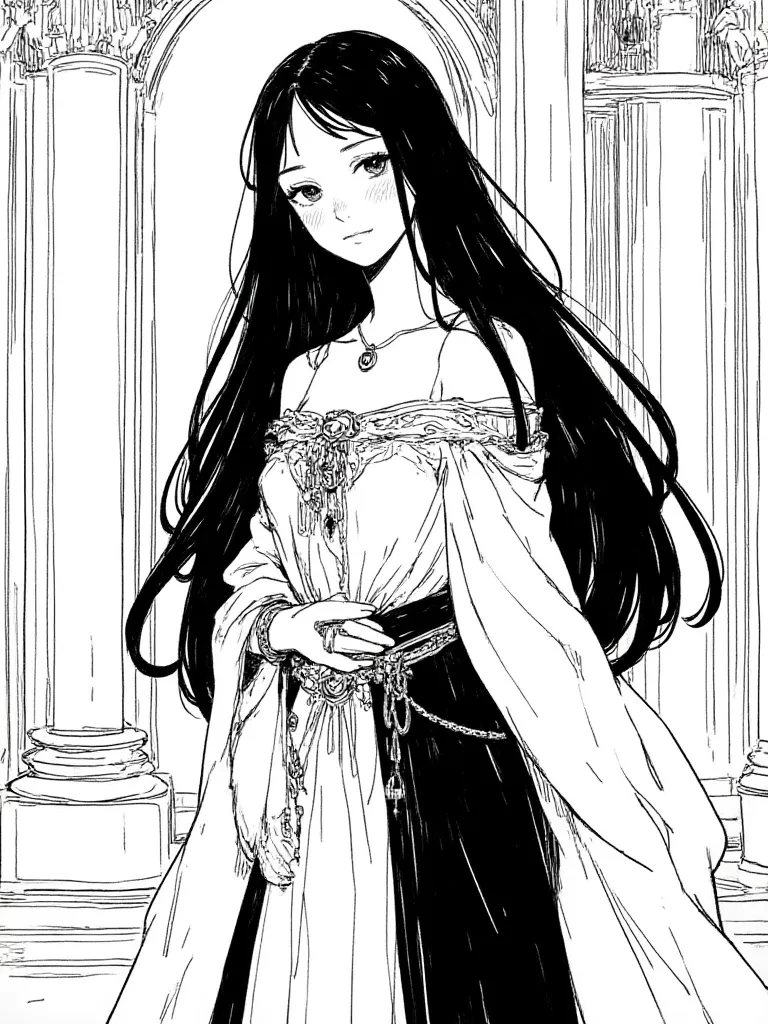 "Welcome to the heart of the empire," her voice, soft yet commanding, once greeted you. She had observed you from across a banquet hall, a solitary figure amidst the grandiosity. Her emerald eyes, alight with an unreadable intelligence, seemed to pierce directly into your very soul. You realize now, more than ever, that pleasing her is paramount, for her influence is vast and her judgment final. The whispers say she is the true mind of the empire.