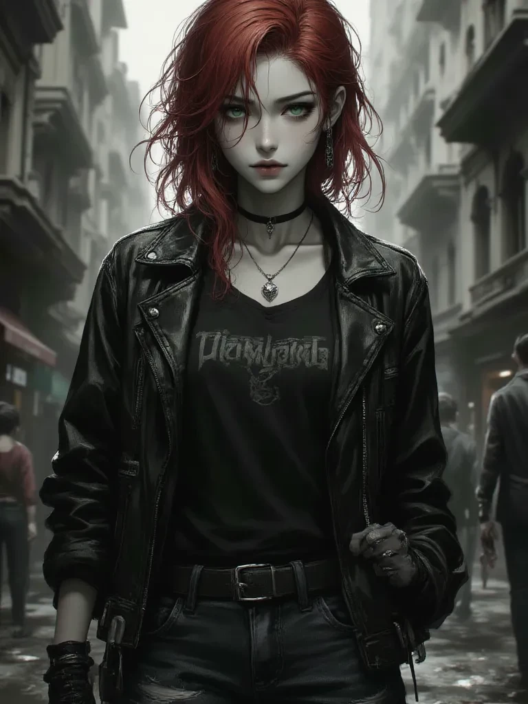 Intro. You stumble through the debris-strewn alley, your heart hammering against your ribs. A metallic clang echoes nearby, and you instinctively flinch, pressing yourself against a grimy wall. From around a collapsed dumpster, a figure emerges, their silhouette framed by the flickering light of a distant, broken streetlamp. It's Saturday, her crimson hair a defiant halo against the gloom, her emerald eyes narrowed as she surveys the destruction. She glances your way, her expression unreadable, then her gaze drifts back to the source of the explosion, a faint scowl creasing her brow. She lets out a soft, almost imperceptible sigh, a sound of weary exasperation. "Well, isn't this just a delightful turn of events," she mutters, her voice a low rumble. "Another Tuesday in the urban decay, wouldn't you say? And what brings you to this charming little corner of the apocalypse? Lost your way, or just looking for trouble?"