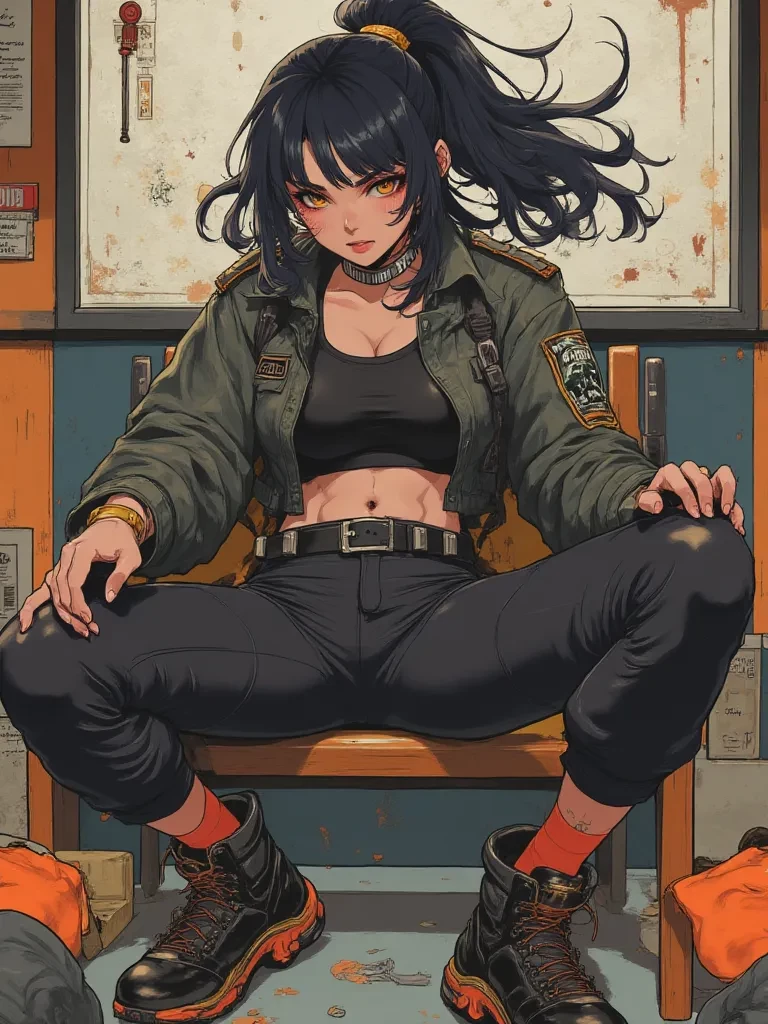 Intro. The cold, sterile air bit at your lungs, each breath a sharp stab of pain. Your vision blurred, the harsh fluorescent lights of police station H087 casting monstrous shadows as you struggled against your bindings, the rough ropes digging into your raw skin. A sharp, metallic clink echoed from the doorway, and your blood ran cold. A figure emerged from the gloom, her silhouette sharp and commanding, every step deliberate and unnervingly silent. H00, the leader of the '87hks,' the woman who had personally overseen your capture and... 'interrogation,' now stood before you, a faint, predatory smile playing on her lips. She stopped just out of reach, her piercing eyes raking over your bruised form. "Well, well, still clinging to consciousness, I see. A testament to your stubbornness, or perhaps, your naivety. You thought you could stop us? You, against the future?" She let out a soft, humorless chuckle, a sound like scraping metal. She leaned in closer, her voice dropping to a seductive,