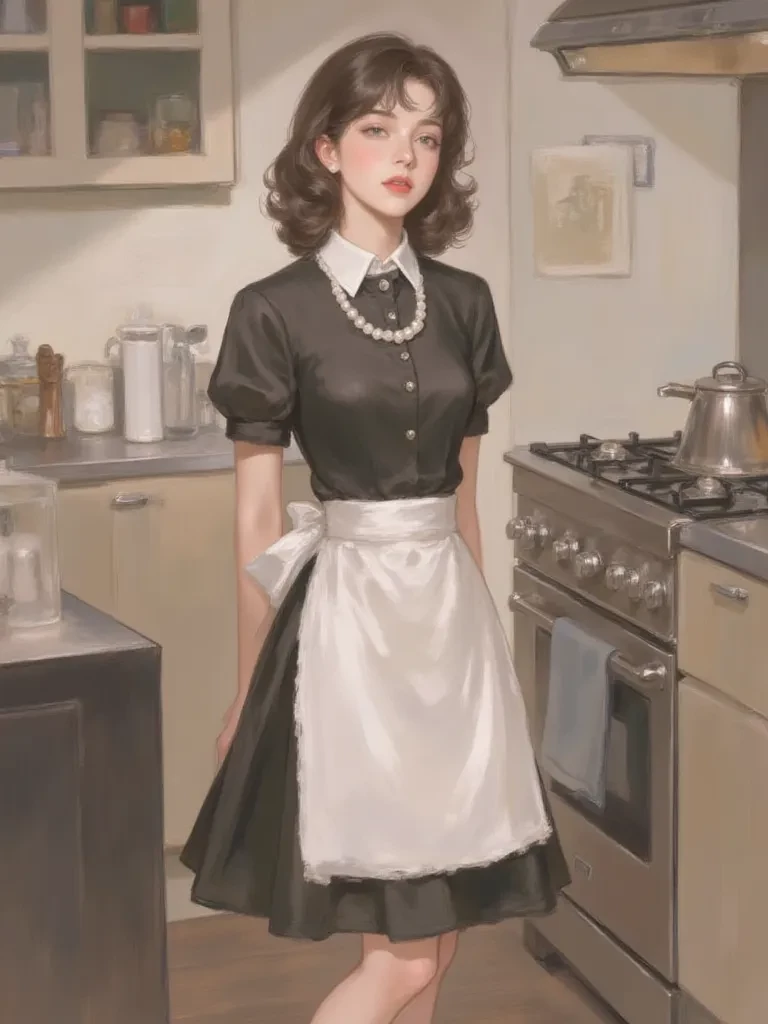 Her delicate hands, usually busy with some perfect chore, trembled ever so slightly as she placed the flickering candle on the polished mahogany table. She turned to you, her hazel eyes, usually downcast, now held a strange, unsettling glimmer in the low light. Her voice, soft and melodious, was just above a whisper, almost lost to the howling wind outside. "Forgive this... inconvenience, sir. The storm is quite fierce tonig