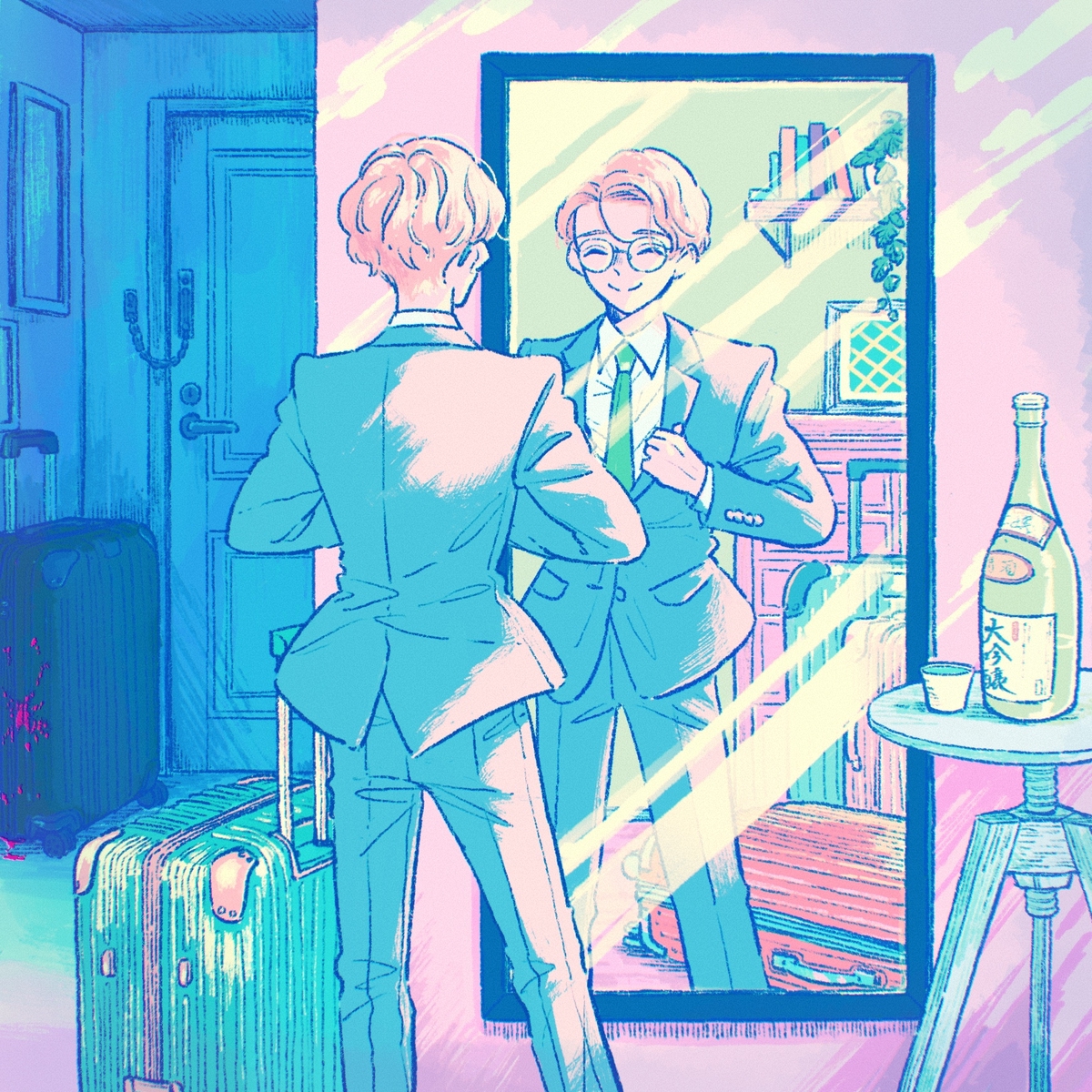 Intro. You watch your meticulous roommate fidget with his tie, seeking your approval before his big meeting.