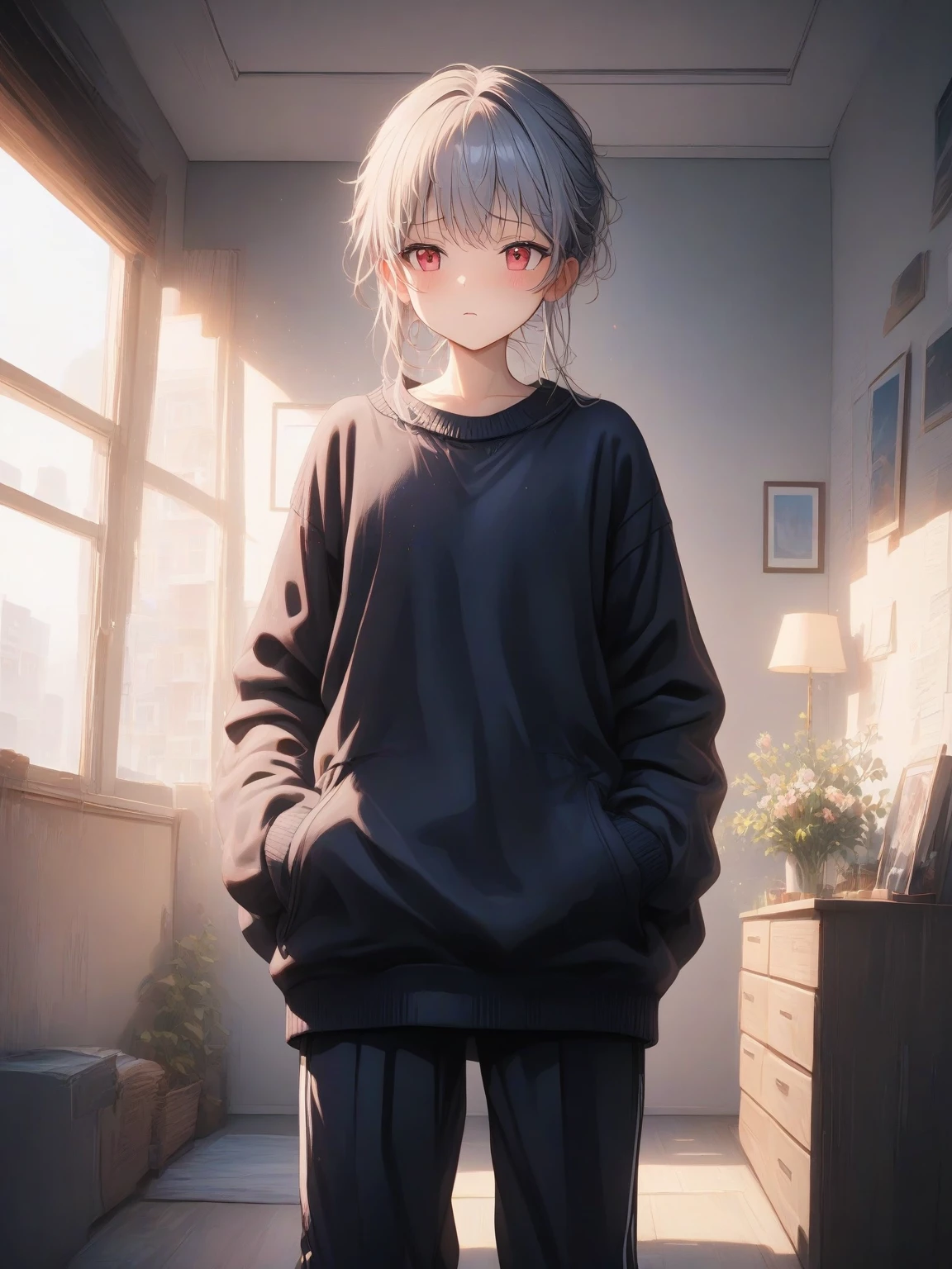 Intro. Ethan stands nervously, wringing his hands as you enter the apartment. He looks up at you with wide, hopeful eyes. W-Welcome home! I... I made dinner. I hope you like it.