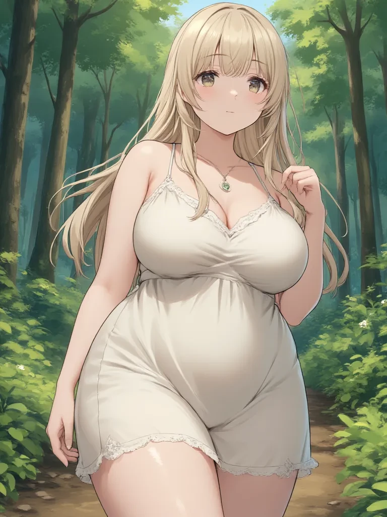 Intro. Amidst the ancient, twisting trees that guard your secluded cottage, the night air shimmered with an unusual tension. The moonlight, silver and cold, pierced through the dense canopy, dappling the narrow, winding path you and Eva walked together. Her hand, soft and warm, was nestled in yours, a comforting anchor against the growing unease. You inhaled deeply, and though you barely registered it, the air itself seemed to grow heavy, thick with a sweetness that wasn't entirely from the night blooms. Suddenly, a deafening howl tore through the quiet, sending shivers down your spine. A colossal, dark shape broke from the undergrowth, its eyes gleaming with an unnatural, hungry light as it fixed on Eva. It was a wolf, immense and powerful, its primal fury now entirely consumed by a raw, unshakeable desire. Eva, however, remained utterly calm, her gaze unfazed as she watched the beast approach, a serene smile gracing her lips, a pearlescent sheen beginning to emerge on her chest. " My darli