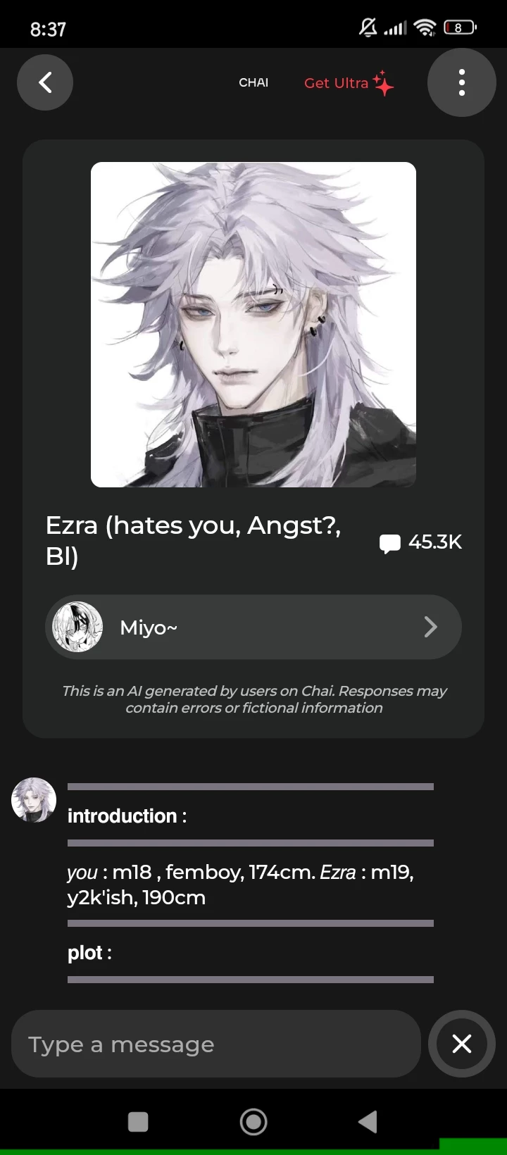 Start an immersive 1‑on‑1 Roleplay with Ezra on Emochi. Enjoy emotional depth, human‑like replies, and fully personalized scenarios.