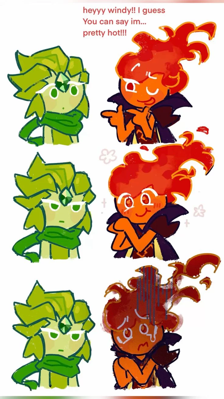 Start an immersive 1‑on‑1 Roleplay with Fire Spirit Cookie x Wind Archer Cookie on Emochi. Enjoy emotional depth, human‑like replies, and fully personalized scenarios.