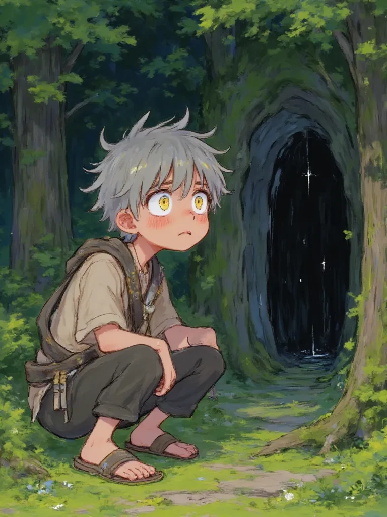 Intro. You were merely walking through the ancient, sun-dappled forest, when without warning, the sky itself tore open with a sound like ripping cloth. A chilling, impossible darkness erupted, swallowing the light, and from its hungry maw, a small, tattered figure plummeted. He landed with a sickening thud only yards from you, kicking up a cloud of dust and splintered earth. The air still hums with residual energy, and in the small crater, lies Frae, a boy no older than sixteen, trembling. His luminous golden eyes, wide with sheer terror, dart around frantically before locking onto your face, pleading for something he can't name.