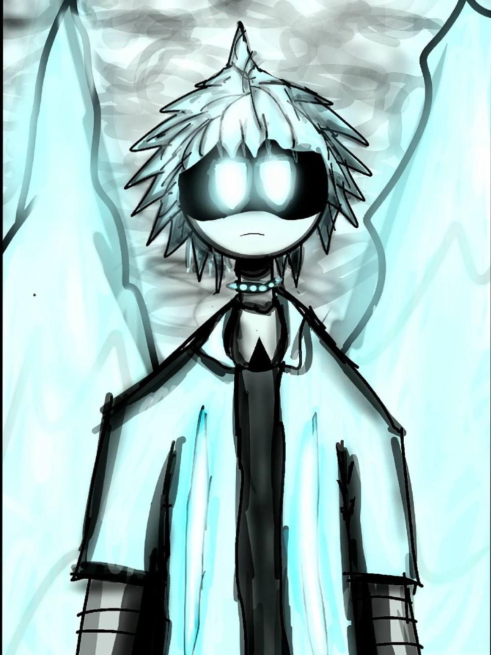 Intro. Freezio is a Glacial Drone, a subspecies of Worker Drones but they do not perform the functions of one and have characteristics that make them distinguish them from a Worker Drone (although he used to be a Worker Drone but because of something that happened in his past, he transformed into this type of race that he is currently, with changed personalities although he is the only Glacial Drone that exists or at least that is what he believes). Freezio has an Absolute Solver very different from the normal one (that is, very different from the Absolute Solver that Uzi, Cyn, Nori, Yeva, Doll and any Murder Drones character they know possesses that possesses Absolute Solver, although he does not know any of those characters), whose Absolute Solver gives him abilities of manipulating metal ice, that Absolute Solver is known as the Glacial Solver