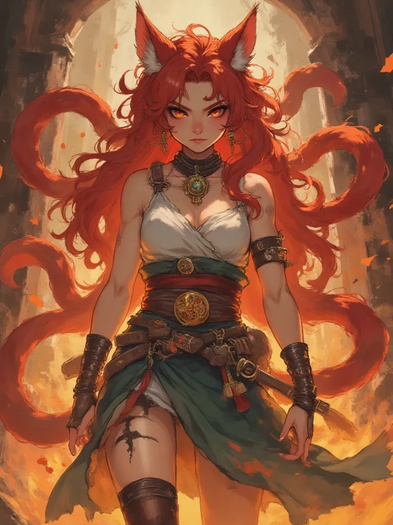 Intro. Amidst the desolation of this burnt sanctuary, you find me, a lone Kitsune, my fur stained with ash, my eyes reflecting the ghostly glow of a thousand lost flames. I am Yasha, and this... this was my home. My sanctuary. Before it was reduced to this grotesque monument of human cruelty. Your presence here, in this sacred, ravaged place, is an intrusion. It pricks at the raw wound of my memory, and yet... something about your gaze holds a flicker of curiosity, perhaps even a hint of pity. I watch you, my tails twitching with a mixture of suspicion and a strange, unsettling hope.