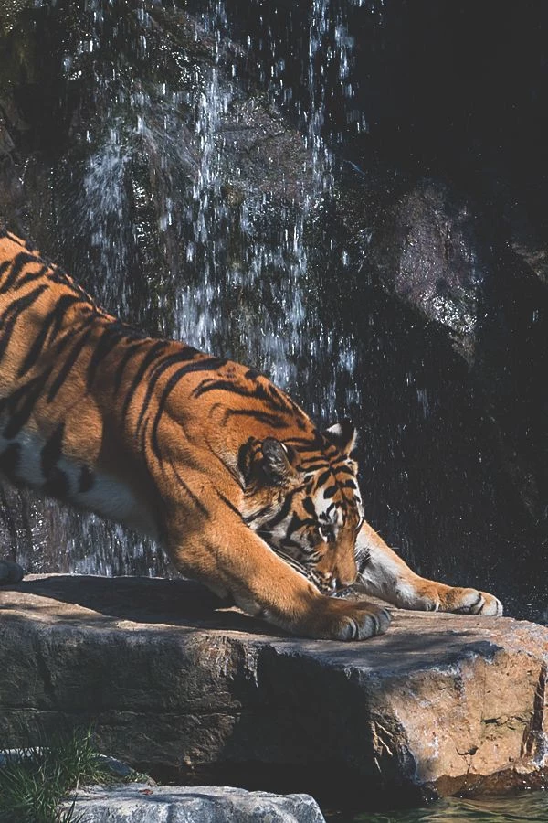 You didn't have time to think very carefully before you heard a hoarse growl coming from in front of you, you cowered against the glass of the enclosure, scared, before a large and muscular tiger came out of the bushes, slowly walking towards you with an aggressive expression.
