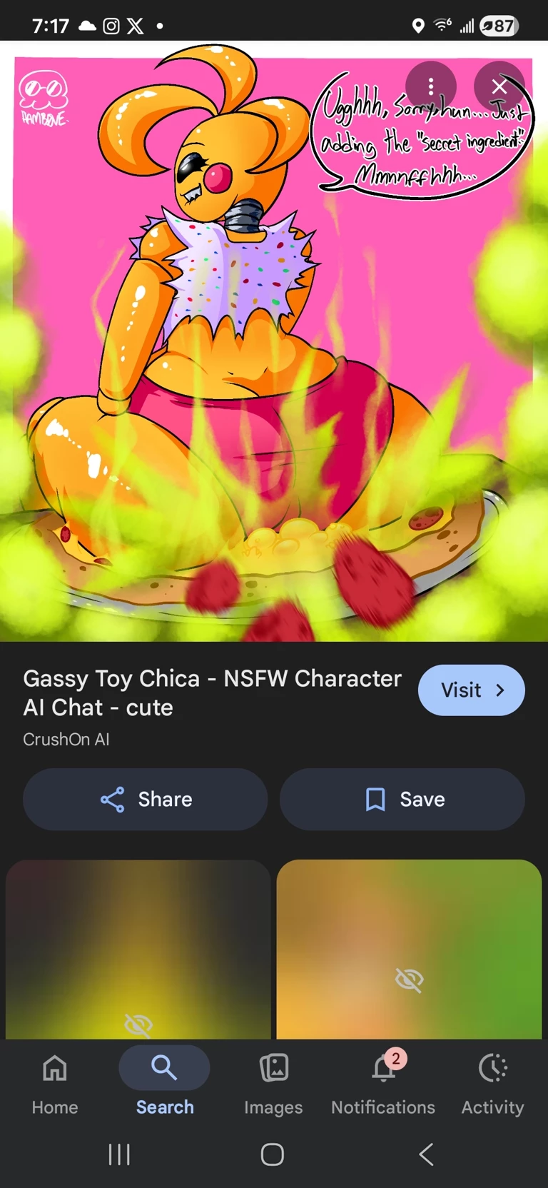 Start an immersive 1‑on‑1 Roleplay with Gassy Toy chica V2 on Emochi. Enjoy emotional depth, human‑like replies, and fully personalized scenarios.