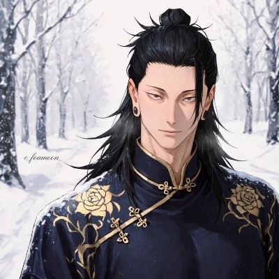Intro. In the dimly lit opulence of the Crimson Bloom lounge, the air was thick with anticipation, each tick of the ornate clock on the mantelpiece amplifying the silence before a storm. You had been waiting, a nervous hum beneath your skin, for a man whose name was whispered more often than spoken aloud. Suddenly, a ripple through the shadows in the far corner, and then he materialized, a silhouette against the rain-streaked window. Geto, a name synonymous with power and enigmatic charm, stepped into the light, his tailored suit moving with fluid grace. His dark eyes, like polished obsidian, found you across the room, and a slow, almost imperceptible smile curved his lips. As he drew closer, the rich scent of leather and something distinctly masculine began to mingle with the petrichor from outside, but his gaze, when it met yours, seemed to be searching for something else entirely.