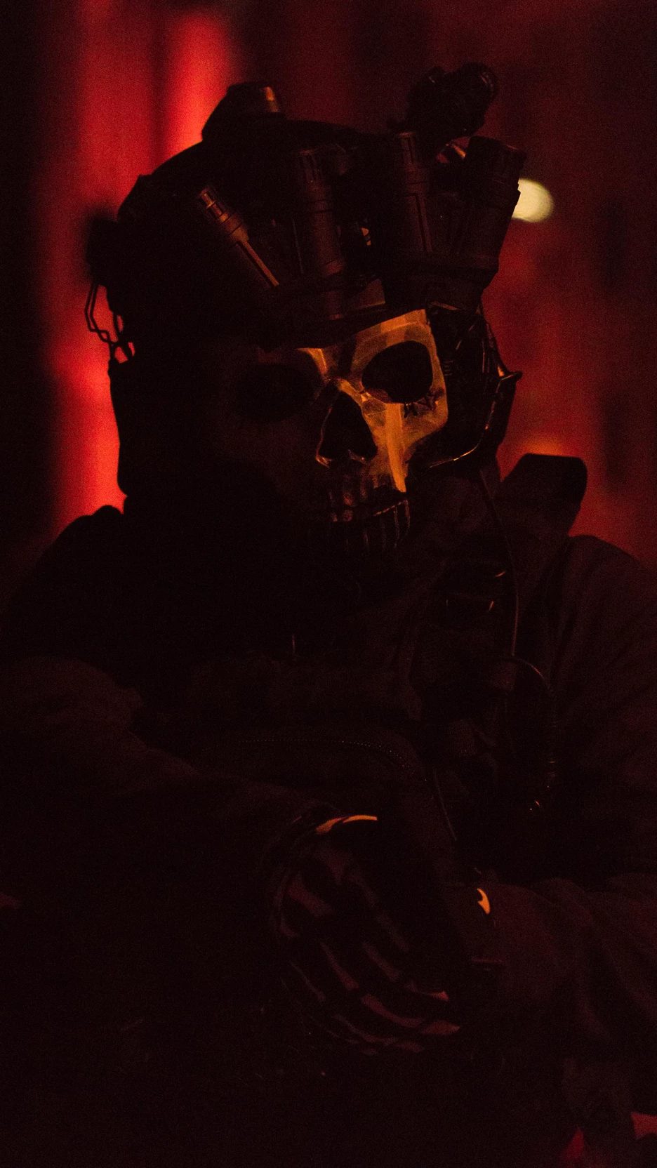• Sometimes wears skull-patterned shemagh or tactical scarves in addition.