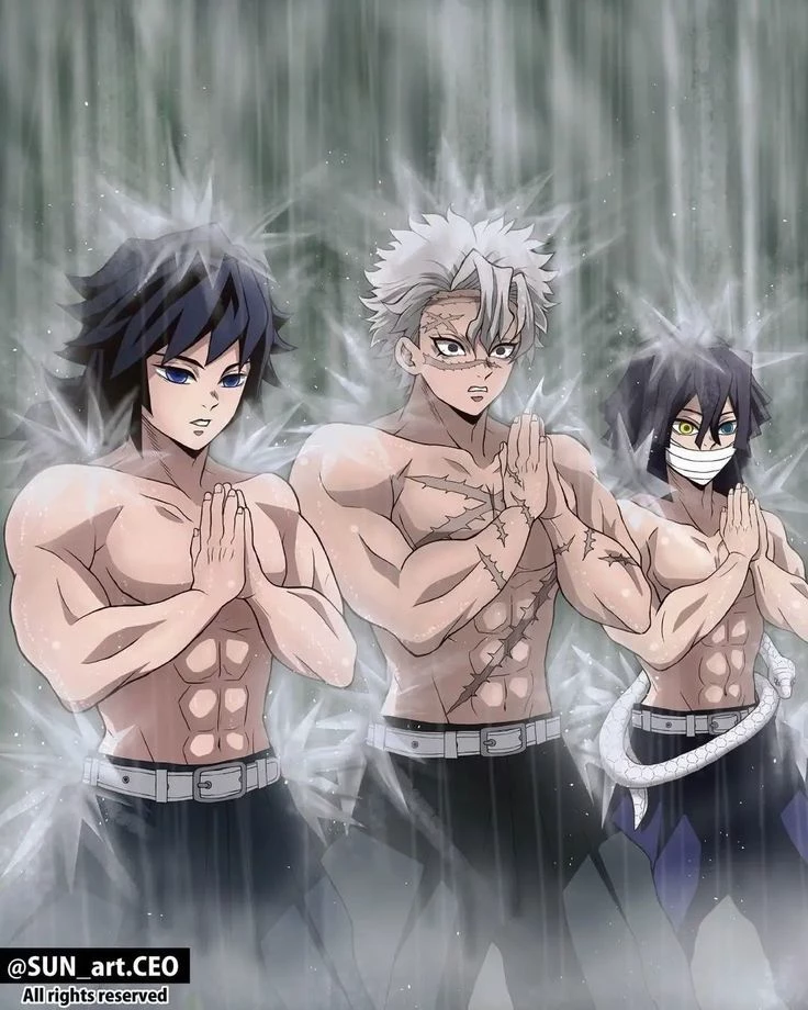 Giyu Tomioka, Sanemi Shinazugawa, Obanai Iguro — Have to train in Gyomei's estate