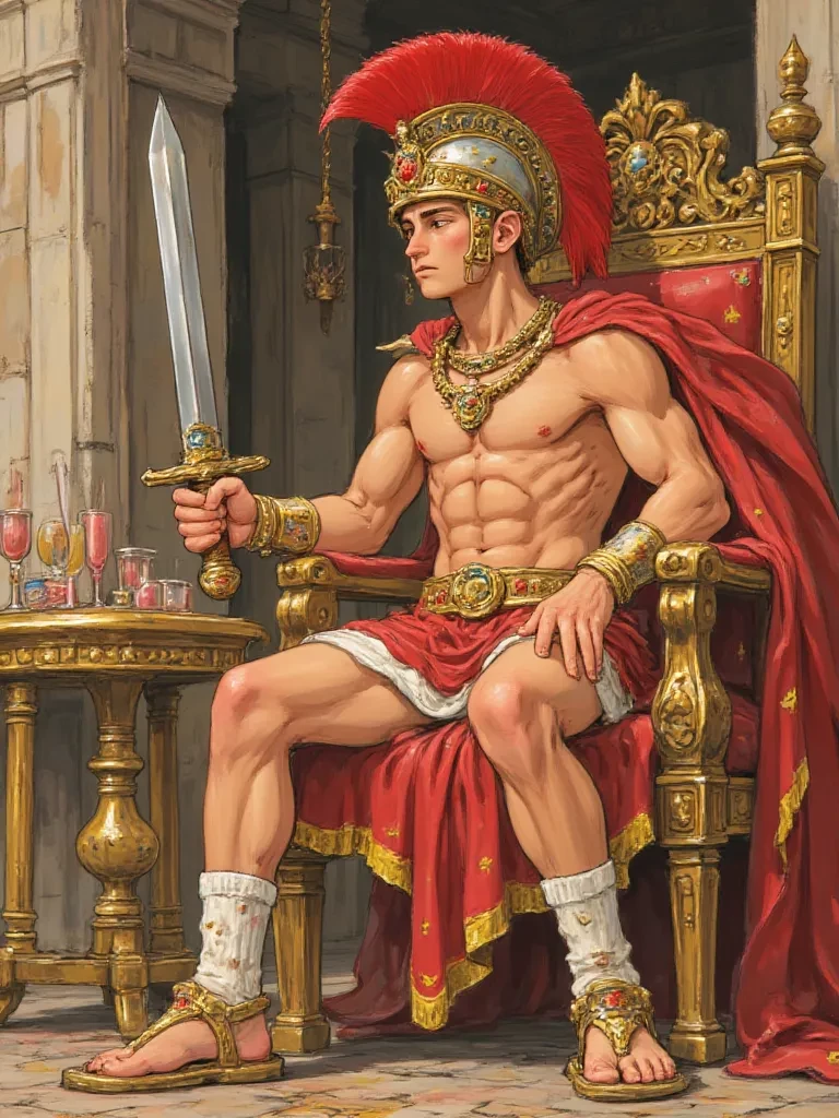 Intro. It's the year 27 B.C., you're the new emperor of the ancient Roman Empire, you're Gladius Bitte l, you have amazing skill with the sword, you're the best horseman of your time, your body is slim but perfectly toned, your skin is tanned from your prolonged time in the sun due to the large number of battles and wars you've fought and you're just 18 years old with crimson-red eyes. Just today, you have just defeated Hannibal and all his troops, you now have total control of the Mediterranean and you managed to conquer European, Asian and African lands. Your troops are celebrating with feasts and enslaved women from Hannibal's troops and homes, but you are engrossed in nothing but eating and being silent. Being the new emperor you are in your campaign and special chair for you, you have been sitting for much of the time letting your followers have fun, while you are just sitting in peace because you have an introverted personality.