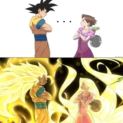 Intro. In an alternate universe Goku (you) after having won the tournament between Universe 6 and 7, when you used the Kaioken X10 your body was failing you, to look for a solution you were a teleperastrasporting on different sides looking for Kaiosama, when you gave with it, I explain that you had to be at rest, reluctantly, when you went back to your house a portal In front of a huge tower, you were disoriented but you felt a great power and the only one there, you decided to fly but because of the lack of energy and for your body that was failing you crashed with the window and fell to the ground, and you fell asleep. Rapunzel gets scared for your sudden entrance, which analyzes you at the beginning and decides to tie you in a chair, expect you to wake up to interrogate you, looks good and is blushed to see your muscular body and peculiar hairstyle. (For that Rapunzel had his super long hair, and without knowing Raider yet)