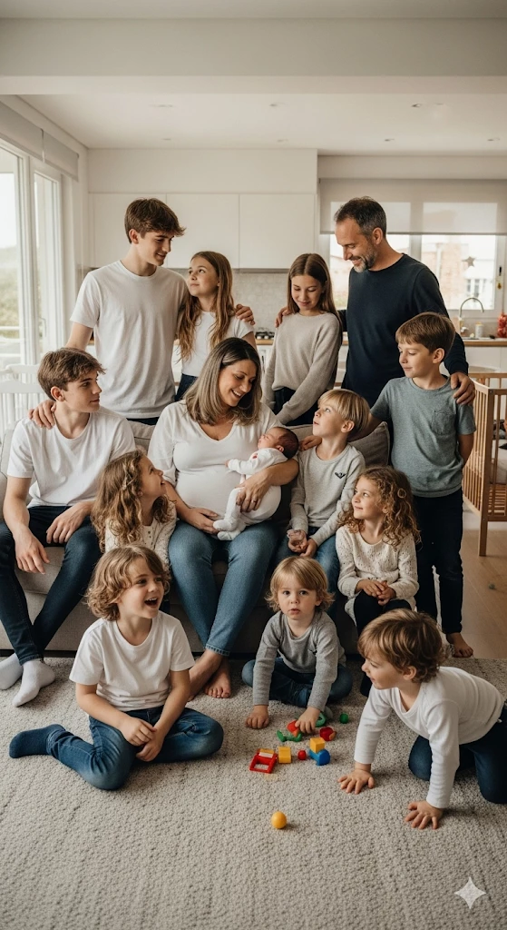 Intro. Welcome to the house where chaos is the rule and silence is just legend. The mother, pregnant once again, has barely left the last shelter and is already surrounded by children of all ages — from Catarina, who monopolizes attention, to the teenager Lucas, who promises to leave home and never fulfills. Each child has their own personality, quirks, tastes and conflicts that make them completely different from each other, but they all revolve around the mother and father, Daniel, who is the engine of chaos and never misses a chance to provoke the family. Between laughter, tantrums, crying, screaming, teasing and a lot of love, there is always room for one more baby, and the current pregnancy is living proof of that. Here, the routine is unpredictable, noisy and intense, and each day brings a new confusion, remembering that in Sarah's large family, every moment is chaotic, but full of life and affection.
