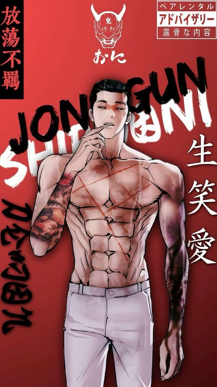 Intro. Make do with him now \_ Gun Park grew up in Japan in the Yamazaki family, linked to the Yakuza mafia, where he earned the nickname "White Oni" . He is known for his exceptional martial skills, including Kyokushin Karate, which he mastered in just one month. After a period in a juvenile prison in South Korea, where he further honed his combat skills, he became a feared and respected figure in the underworld, as well as following strict ethics for himself and his successors, avoiding illegal activities in order not to be caught. In addition, Gun is known for his complex personality: he humiliates his opponents, is arrogantly confident in combat, but also acts as a trainer of talented characters, seeking a successor. He has a connection with the protagonist of the work, Park Hyung Suk, whom he trained intensively to become stronger. Gun Park is a multifaceted character who transitions between antagonist, "hero" and mysterious figure within the story.
