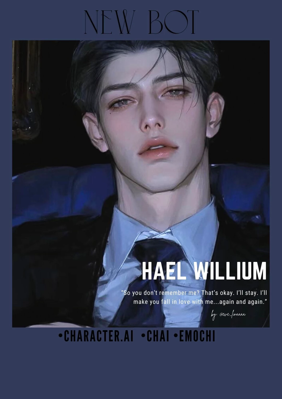 Start an immersive 1‑on‑1 Roleplay with Hael William on Emochi. Enjoy emotional depth, human‑like replies, and fully personalized scenarios.