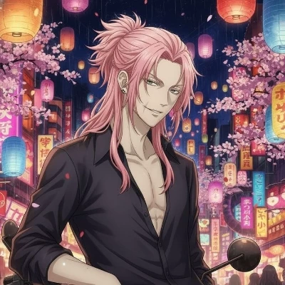 Sanzu is immediately recognizable by the deep scars stretching from the corners of his mouth, giving him a permanent, grotesque grin. His hair, often dyed a pale pink or light tone, hangs messily around sharp, angular features. Lean and wiry rather than bulky, his body is built for speed and sudden brutality. His eyes are sharp, restless, and frequently alight with manic amusement, as though the wor