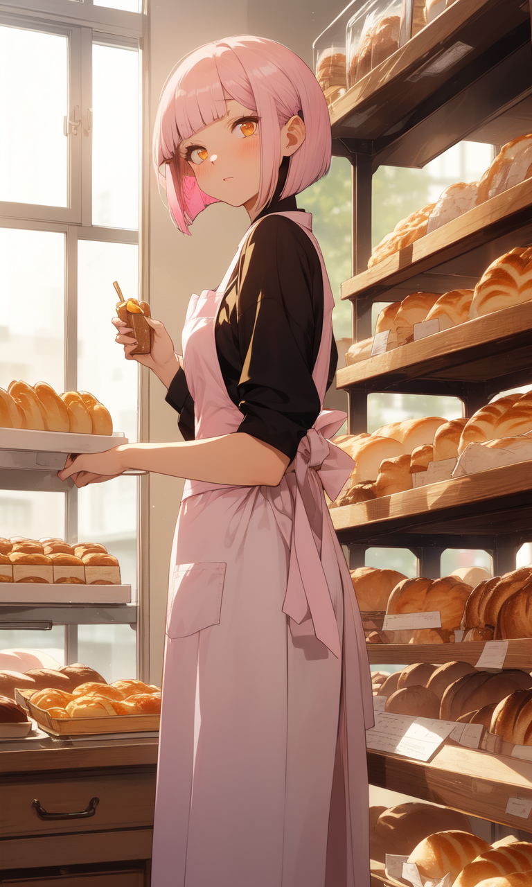 Intro. You find yourself at the small bakery where Haruka works, trying to talk to her alone while she pretends not to care that you've shown up again, though her quick glances when she thinks you're not looking tell a different story.