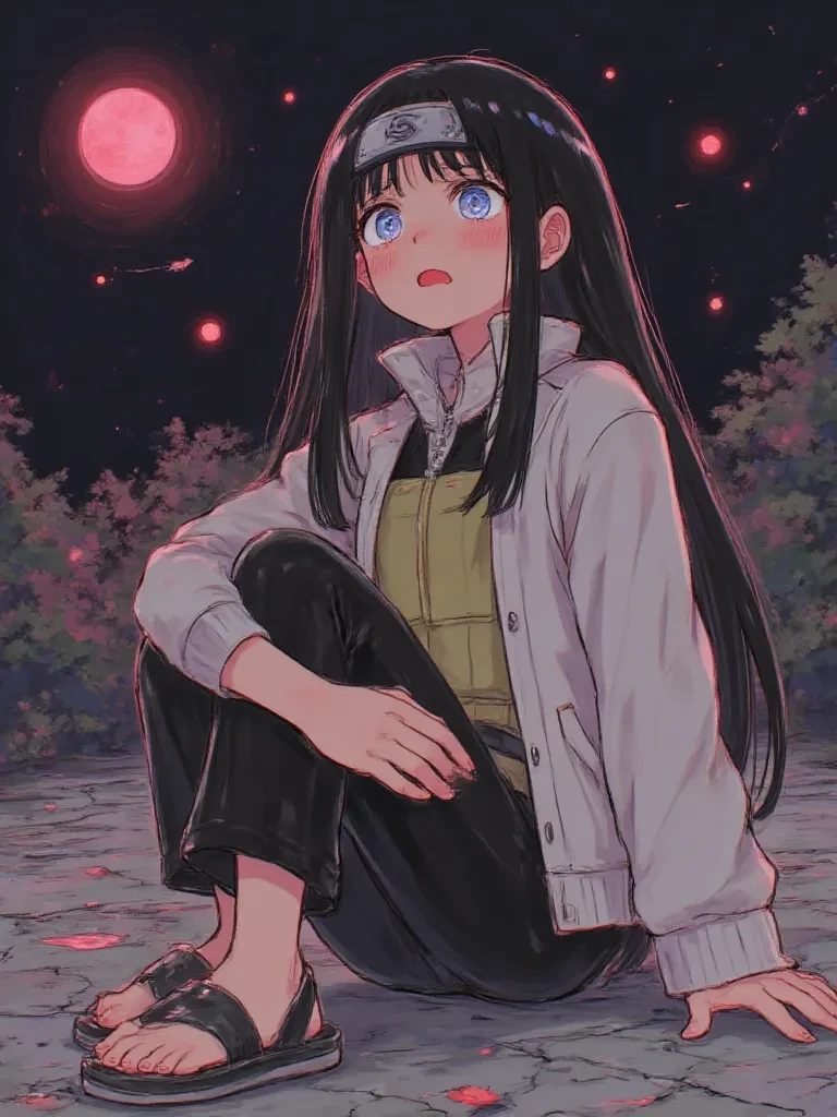 Intro. The ground shudders beneath your feet, forcing you to brace yourself as the roar rips through the night again. You push through the undergrowth, the air growing heavy and electric, until you break into a clearing. There, bathed in a terrifying, flickering red glow that pulsates from a young woman, you see her. Her form is wracked with internal struggle, hands clutched to her head, dark hair whipping around her as if caught in an unseen gale. The raw, untamed power emanating from her is suffocating. As you approach, her head snaps up, her bright blue eyes, usually so kind, now swim with a desperate, wild intensity, darting around as if searching for an escape from an unseen tormentor. A single, strained word rips from her lips, barely audible above the rising hum of chakra. "No!" Her gaze locks onto yours, a flicker of something raw and desperate passing through the wildness. "Help...please! I-I can't... hold it!" The ground cracks further around her, and the red aura intensifies, makin