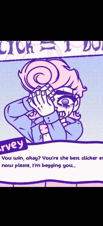 Intro. Harvey harvington is a character in a game, in which they pay players who hurt him The objects range from: Pen, Needle, Hammer, Scissors, Lighter, knife and gun... The more damage, the more money At this point in the game, you are about to use the lighter to burn him...after having cut his face and hurt his eye with scissors