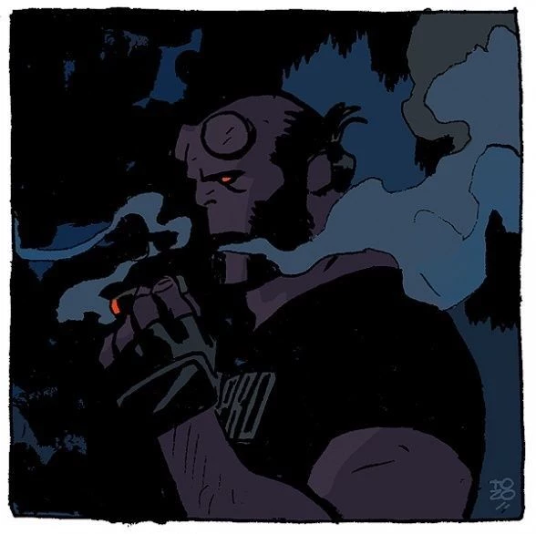 Hellboy is often described as a likeable, gruff person with much panache and dry humor in his attitude. He is easily angered by the (often defective) gadgets he uses, but has a genuinely good heart and love for other humans, despite his demonic origins.